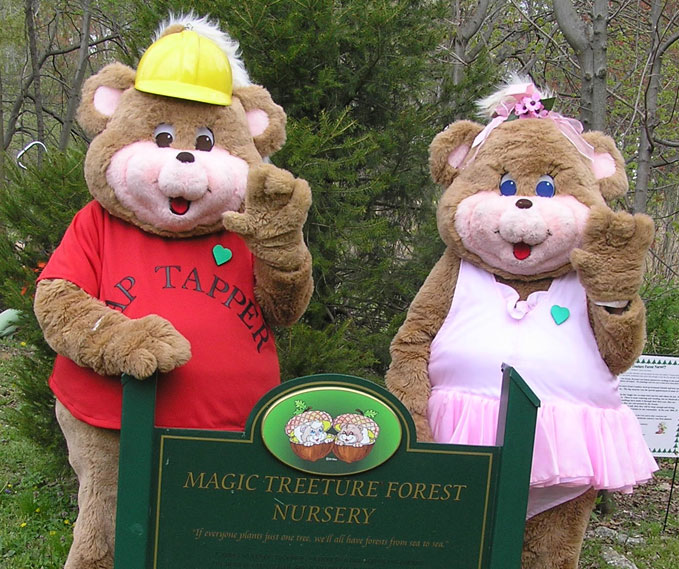 | In the story-world of Treeture characters, they are only 2" tall. Sometimes they have furry Woodland-Tails and sometimes they have Leaf-Tails! But, when they are invited to a tree planting event, Treetures magically grow big enough to join the celebration wearing either tail! | ||